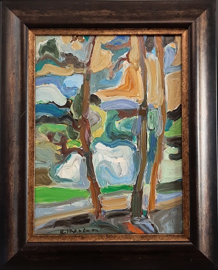 Rūtilis Slavėnas “Trys medžiai”, 53×43,5 cm., drobė, aliejus, 2019.